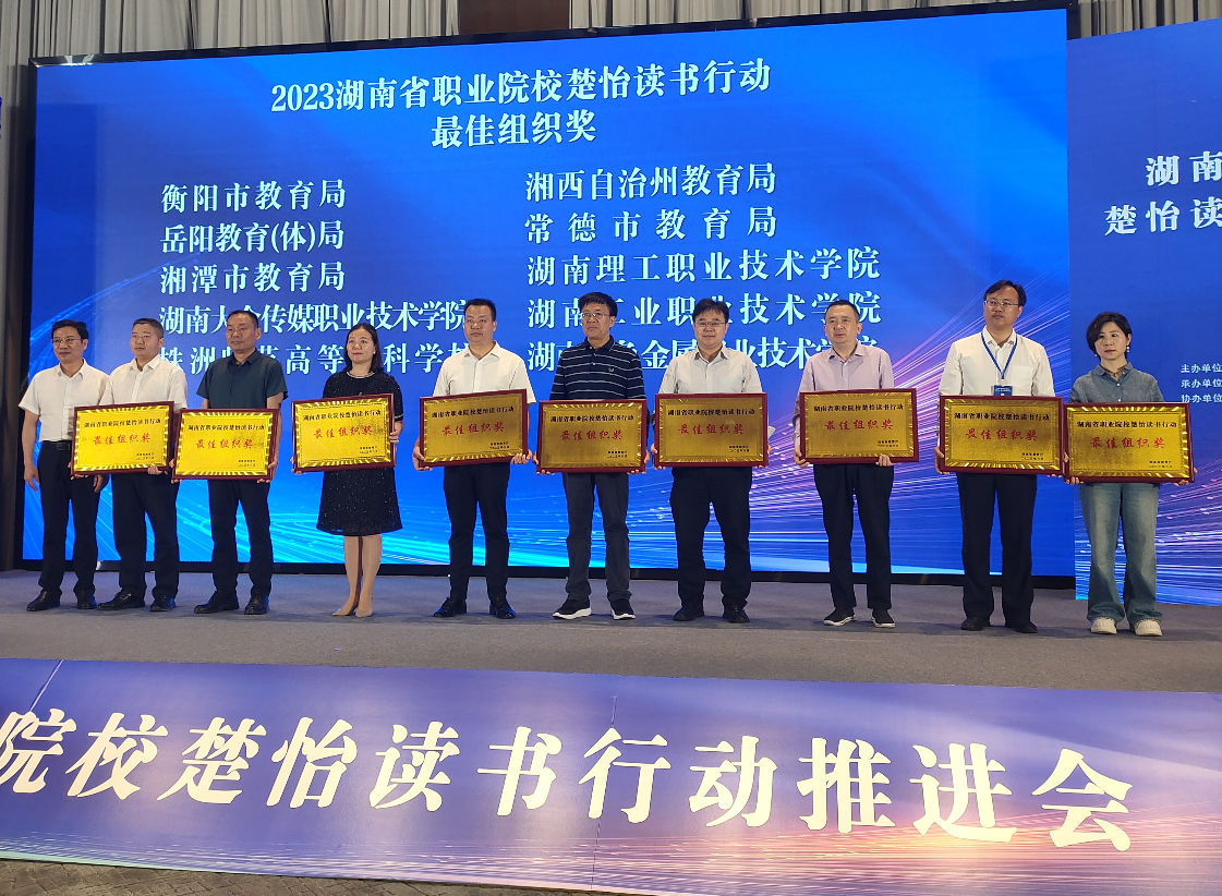 5月16日,湖南省职业院校楚怡读书行动推进会在株洲举行,湖南省教育厅副厅长王仁祥、职业教育与成人教育处处长崔书芳以及各职业院校代表参加会议。我校师生在2023年湖南省职业院校“楚怡读书行动”中荣获多项荣誉。其中,征文比赛一等奖1人、二等奖4人、三等奖5人,“楚怡读书之星”4人,学校荣获最佳组织奖。推进会上对荣获2023湖南省职业院校楚怡读书行动最佳组织奖的单位进行了表彰。学校副校长申剑飞代表学校接受表彰。