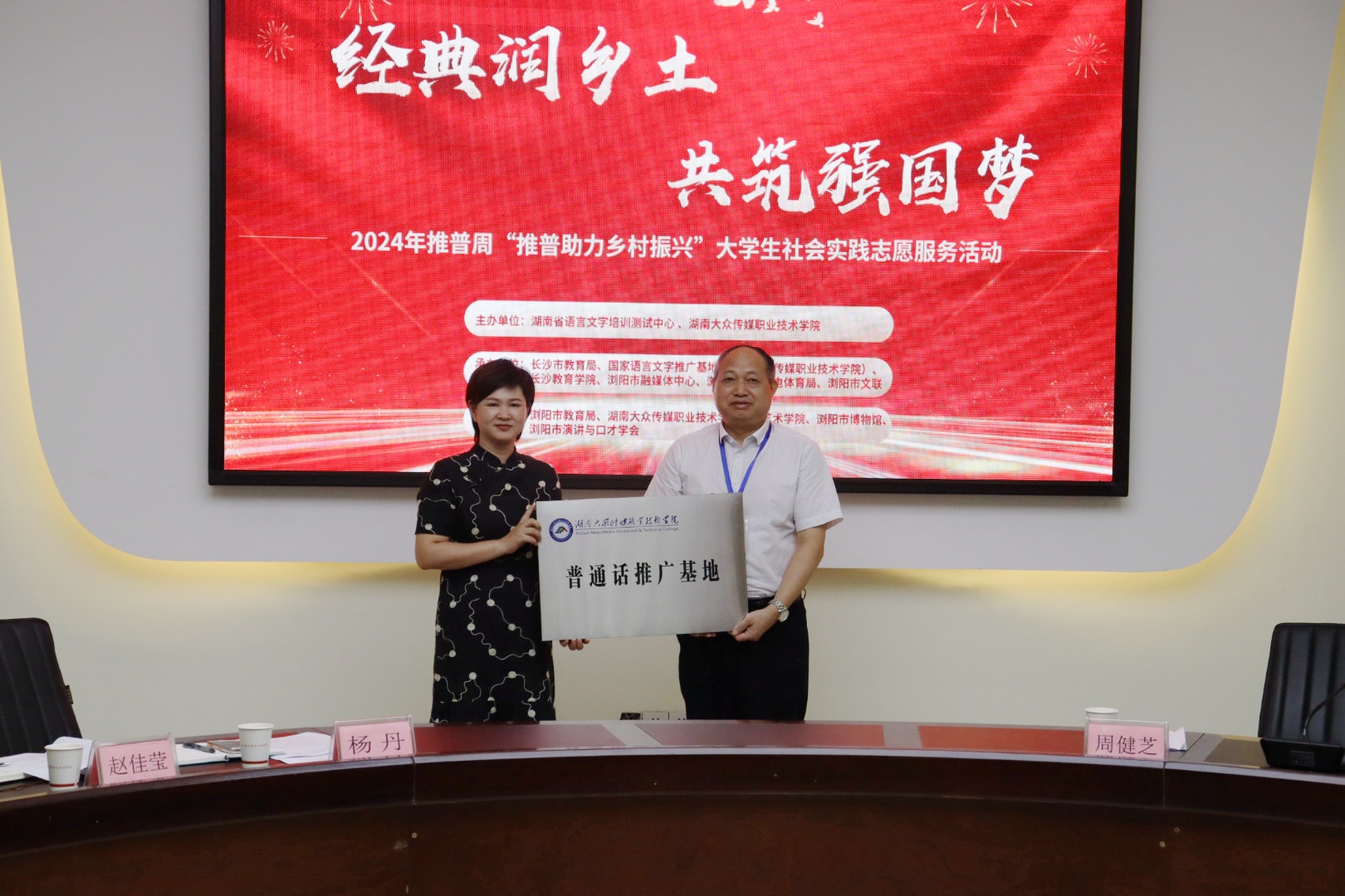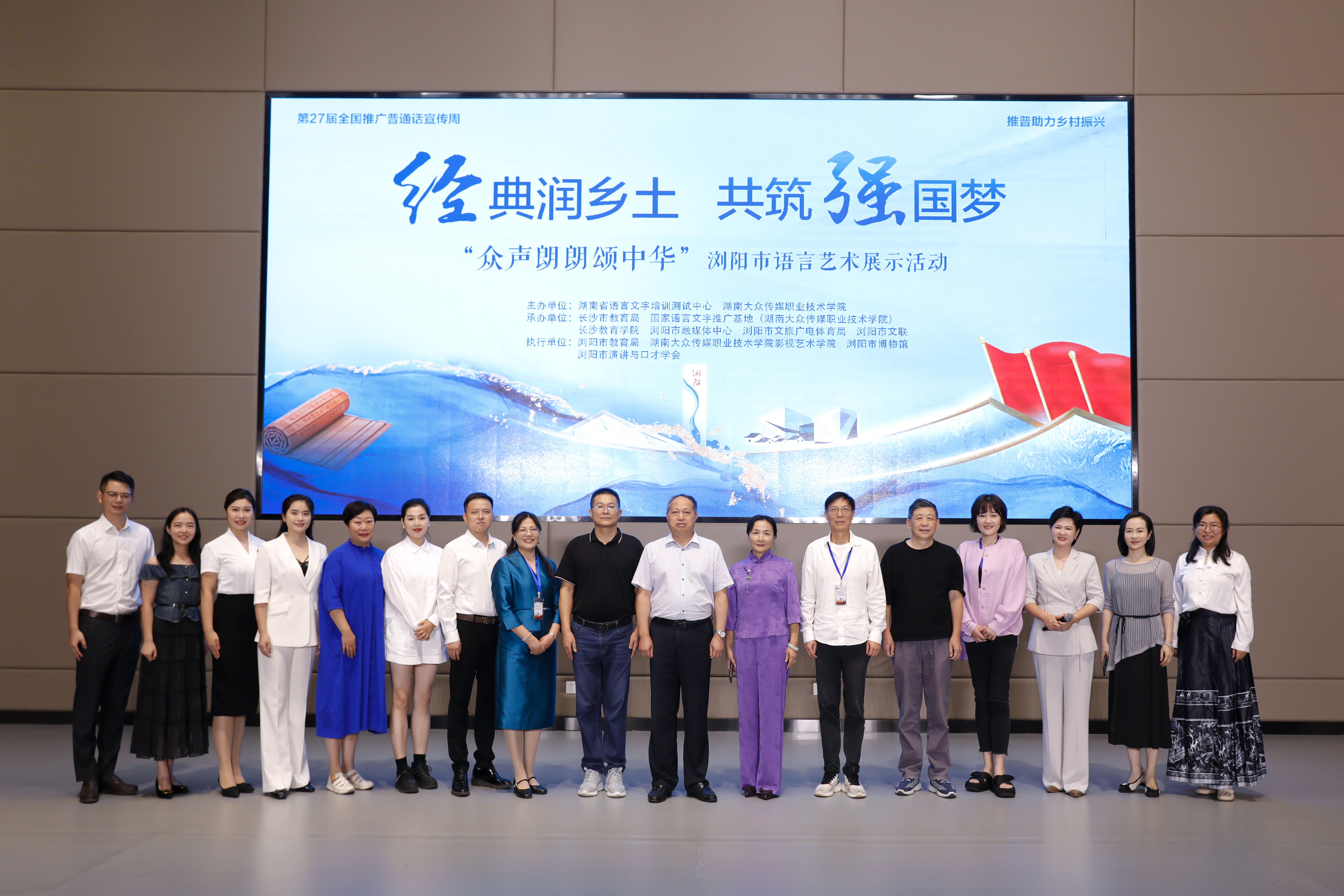 (影视艺术学院 供稿)在第27届全国推普周期间,我校积极响应国家号召,联合湖南省语言文字培训测试中心,共同开展了以“经典润乡土,共筑强国梦”为主题的“推普助力乡村振兴”大学生社会实践志愿服务活动。学校党委书记、国家语言文字推广基地(湖南大众传媒职业技术学院)主任李三福带领影视艺术学院师生组成传媒推普小分队赴浏阳开展推普系列活动。